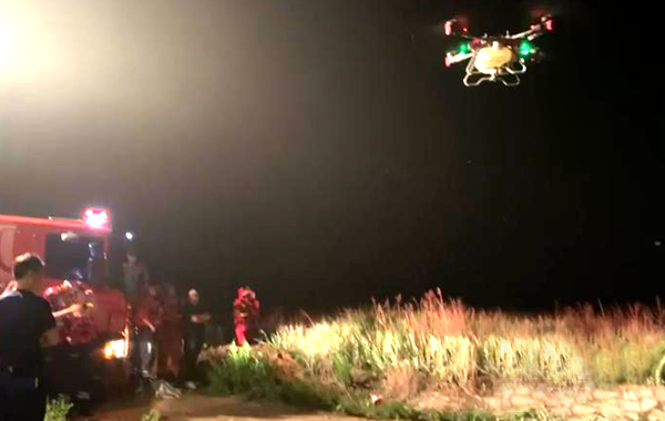 老人因河水暴漲被困 無人機(jī)聯(lián)合